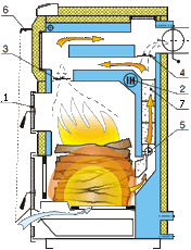 | Используемое топливо | дрова, кусковые отходы древесины, тырсовые и торфяные брикеты, каменный уголь |